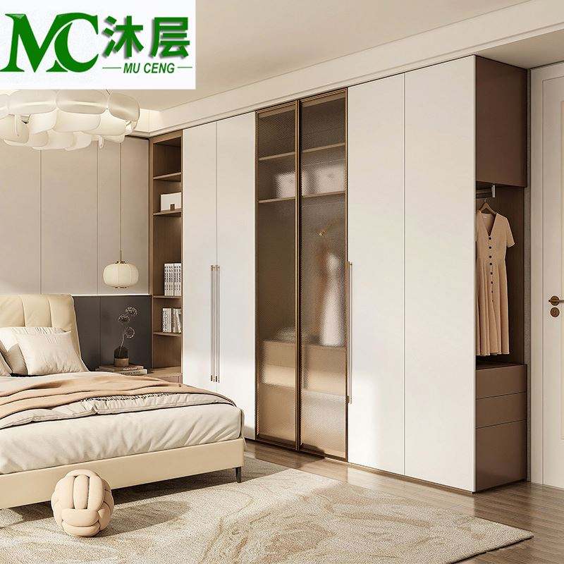 Système d'organisation de placard en bois massif moderne sur mesure de qualité supérieure, avec étagères latérales intégrées pour salle à manger/salon, armoire, garde-robe
