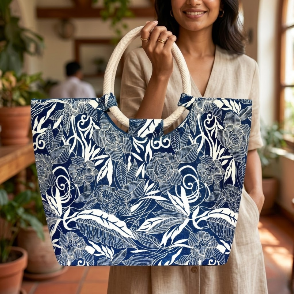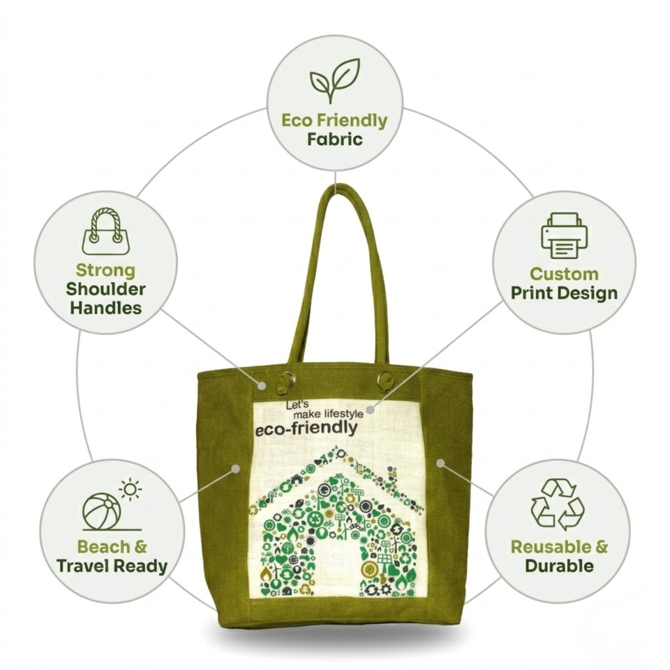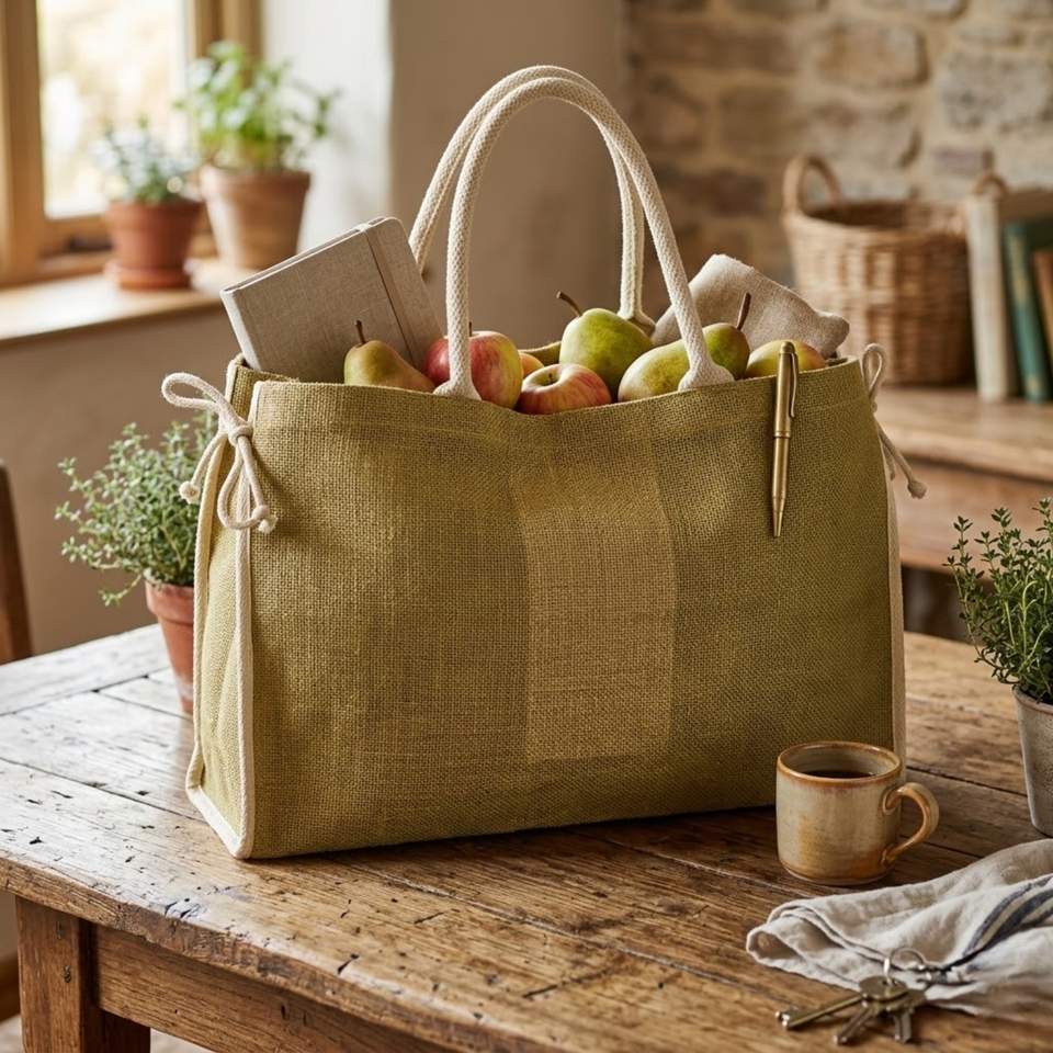 Sac fourre-tout en jute durable, personnalisé et imprimé de qualité supérieure | Sac de plage élégant avec poignée longue, réutilisable, pour le bureau, les voyages et le rangement