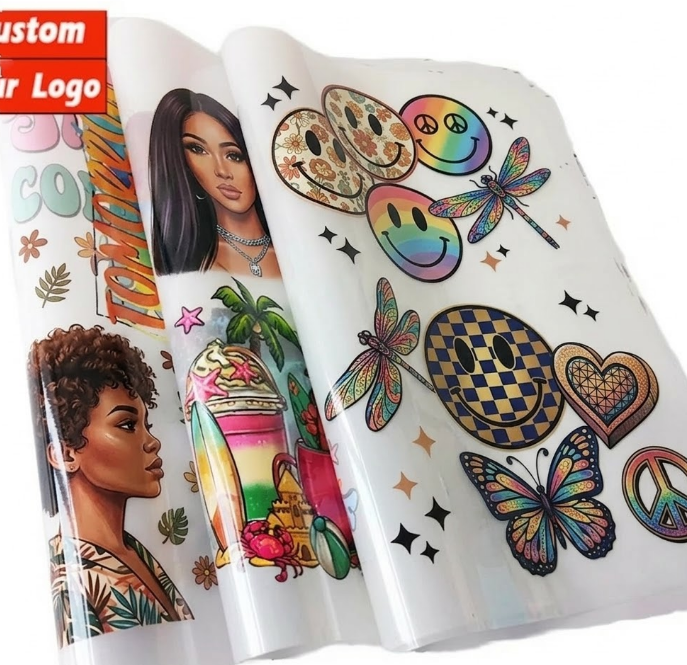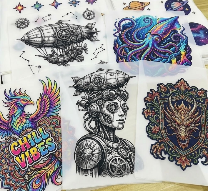 Film de transfert thermique personnalisé de qualité supérieure, résine PET Plastisol, motifs variés, esthétique rétro, multi-designs, pour vêtements, imperméable et durable