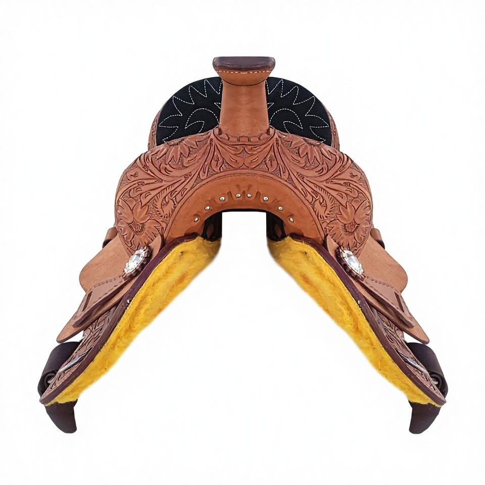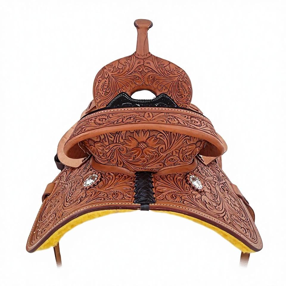 Selle Western Premium Personnalisable, Durable et Légère, en Cuir Véritable, avec Arceau en Fibre de Verre Préformé et Finition Roughout, Outilée à la Main