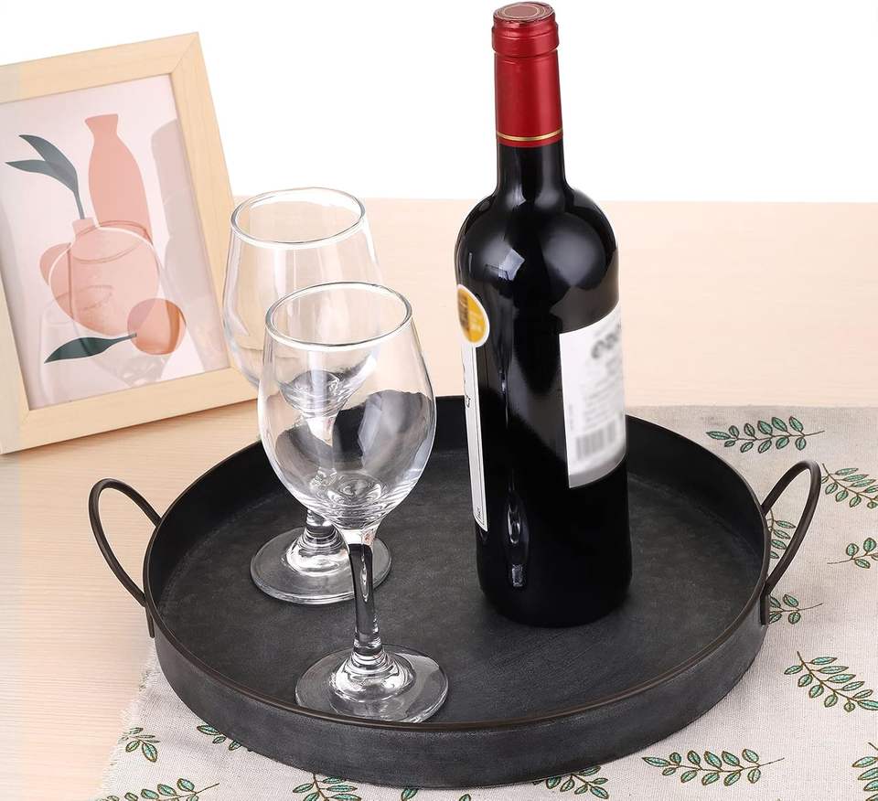 Plateaux de service rectangulaires multifonctionnels de luxe en fer forgé, style Mid-Century, motif floral, artisanat métallique haut de gamme, pour mariage