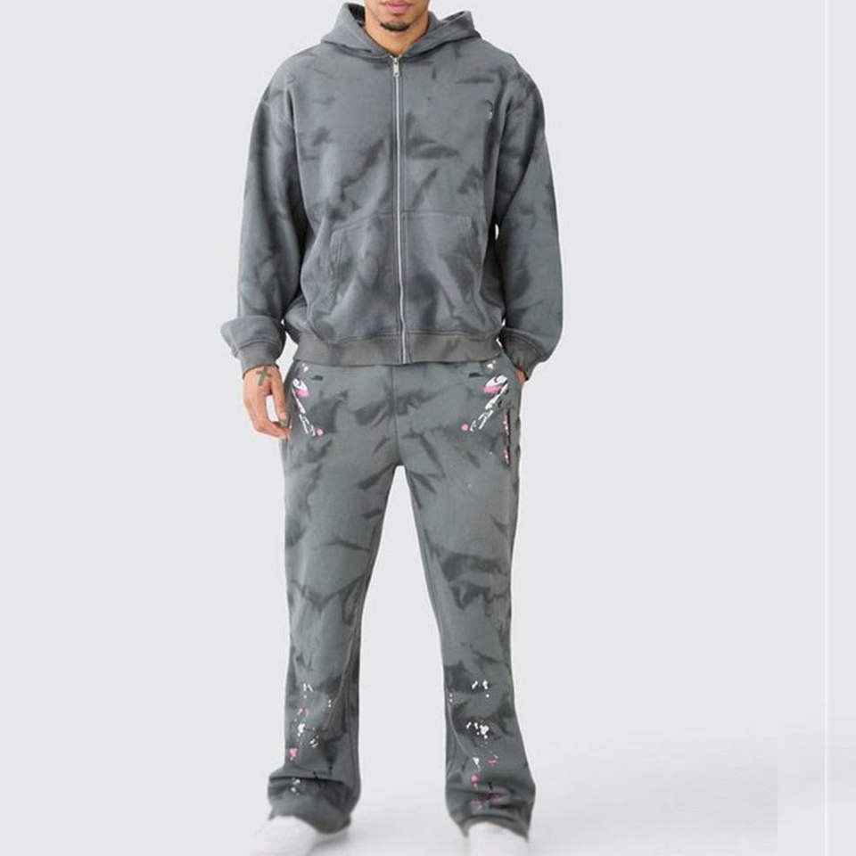 Survêtement d'hiver tissé sur mesure pour hommes, délavé à l'acide, coupe oversize, deux pièces, 100% coton, personnalisable, style urbain, usine OEM ODM