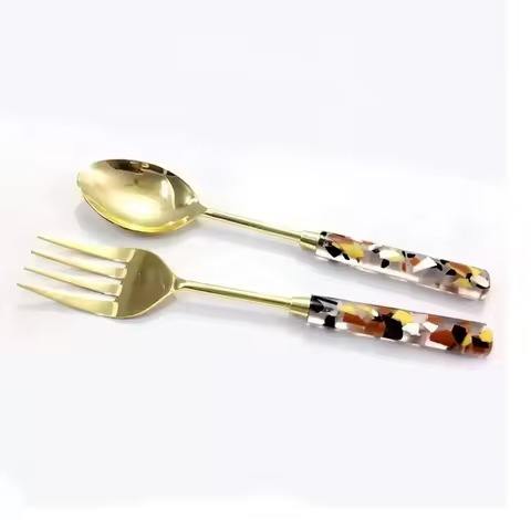 Ensemble de fourchettes et cuillères plaquées argent d'outils à salade personnalisés de qualité supérieure avec manche en bois Design acrylique fait à la main