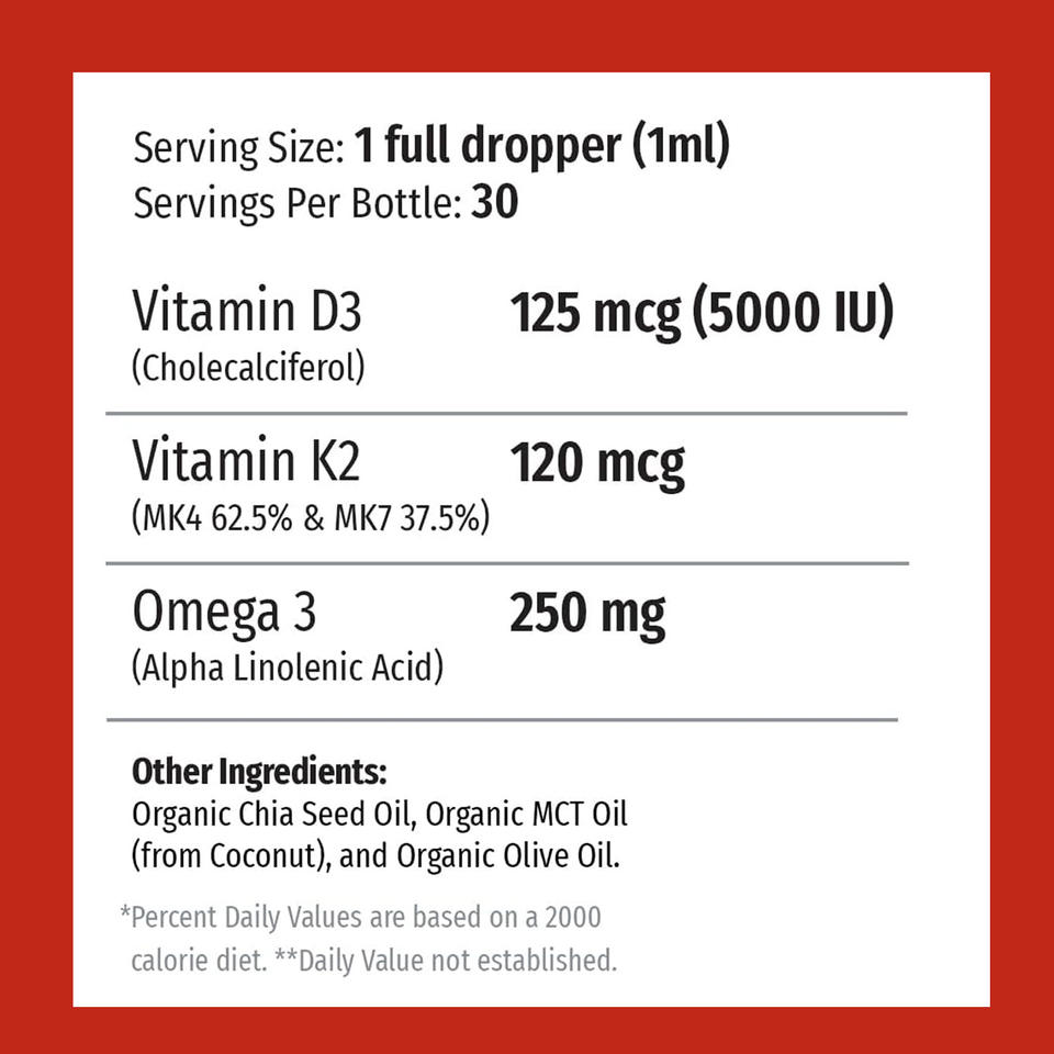 Gouttes liquides orales Premium D3+K2 pour le soutien immunitaire quotidien et la santé osseuse, formule à absorption rapide et à action rapide pour adultes