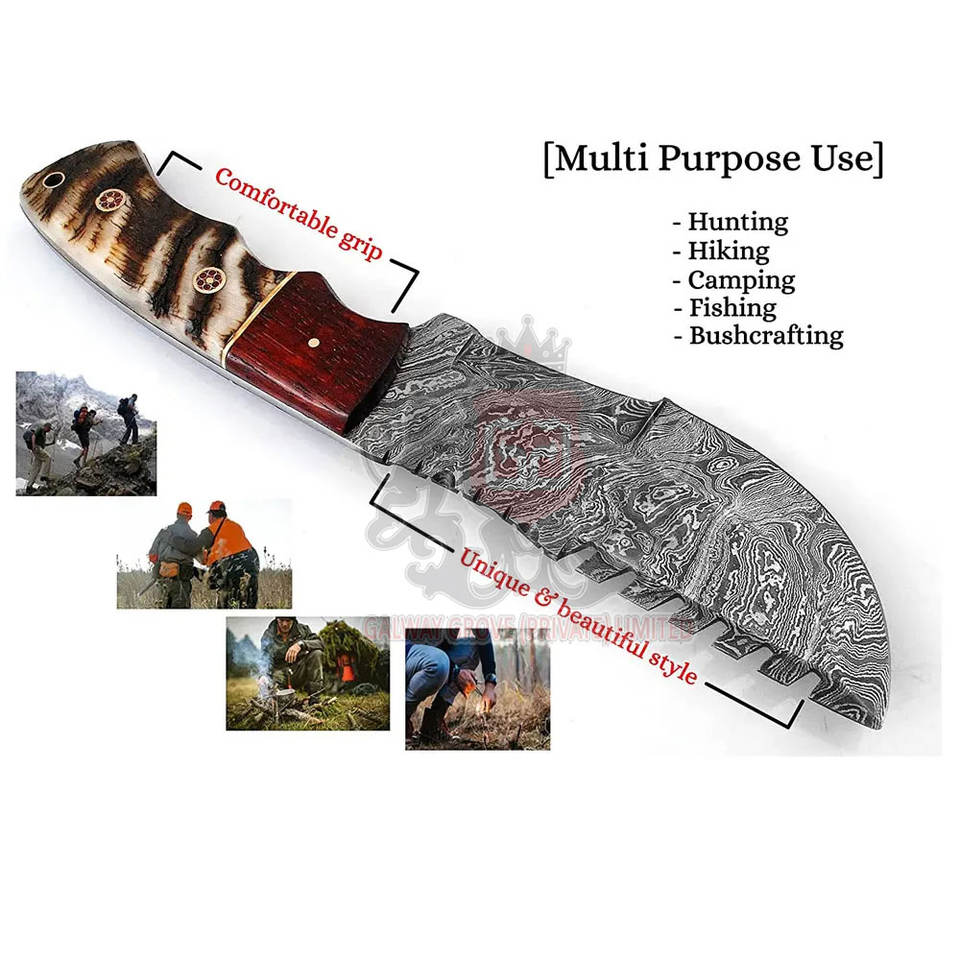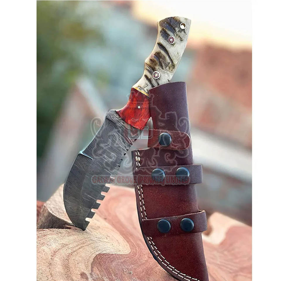 Couteau de chasse à lame fixe en acier damas de qualité supérieure manche en bois ergonomique pour le camping randonnée pêche survie en plein air usage quotidien OEM