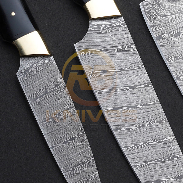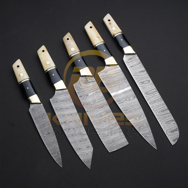 Ensemble de couteaux de cuisine en acier Damas artisanal de qualité supérieure, couteau de chef professionnel ultra-affûté VG10, manche en os coloré, vente en gros OEM