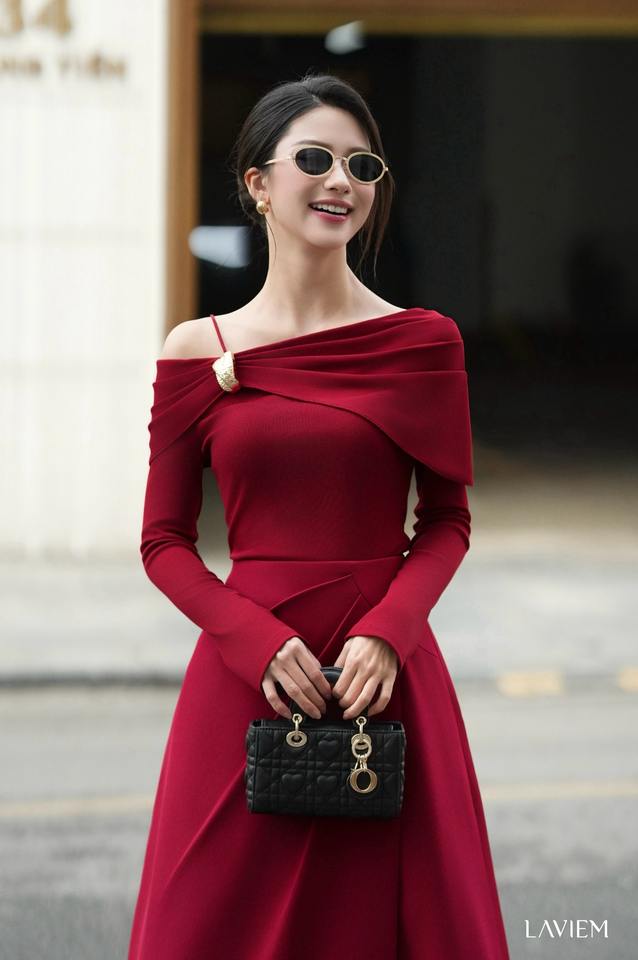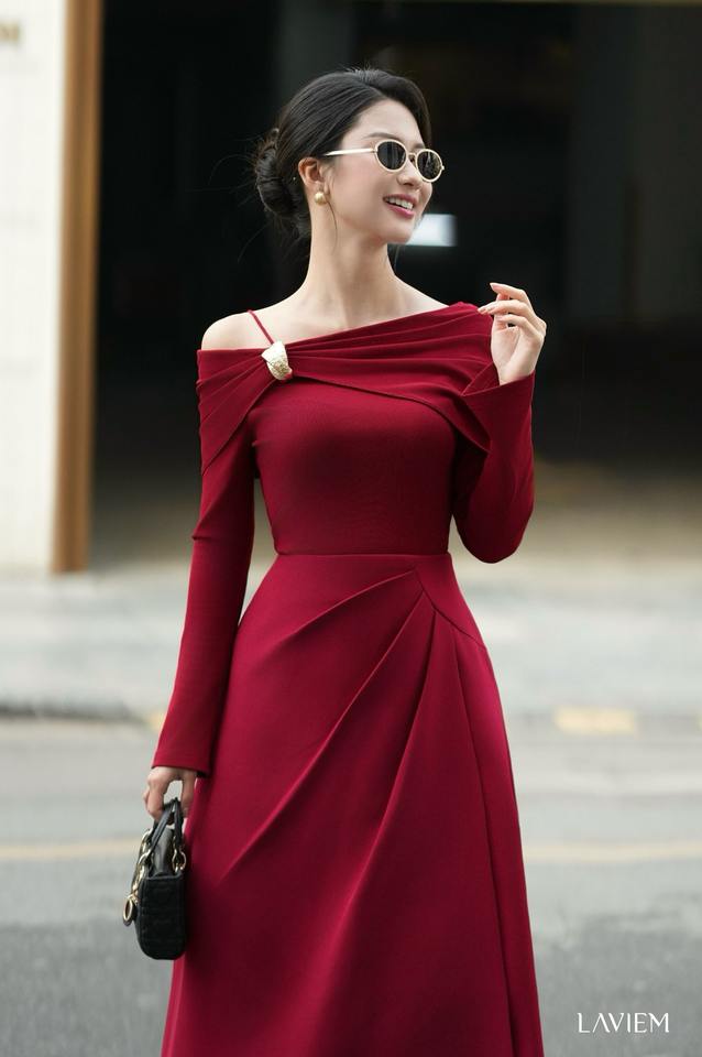 Jupe évasée trapèze pour femme, taille haute, rouge foncé premium | Jupe Layla pour une mode de bureau élégante | LAVIEM
