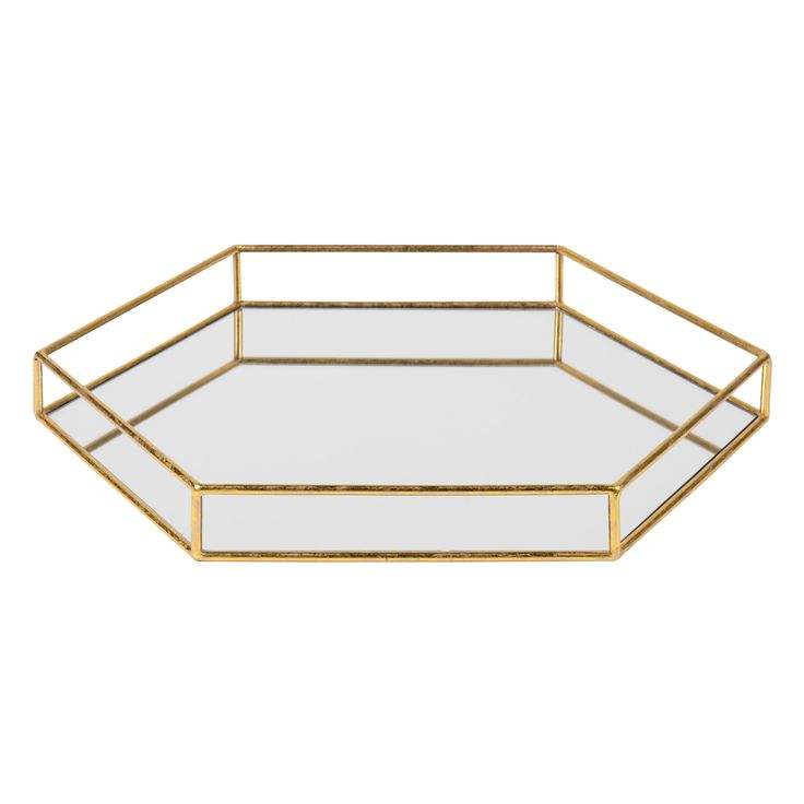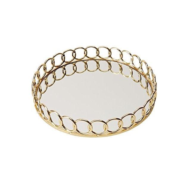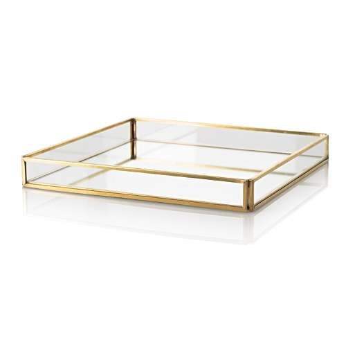 Plateau de table basse décoratif haut de gamme avec cadre métallique et verre réfléchissant, organisateur d'appoint pour salon