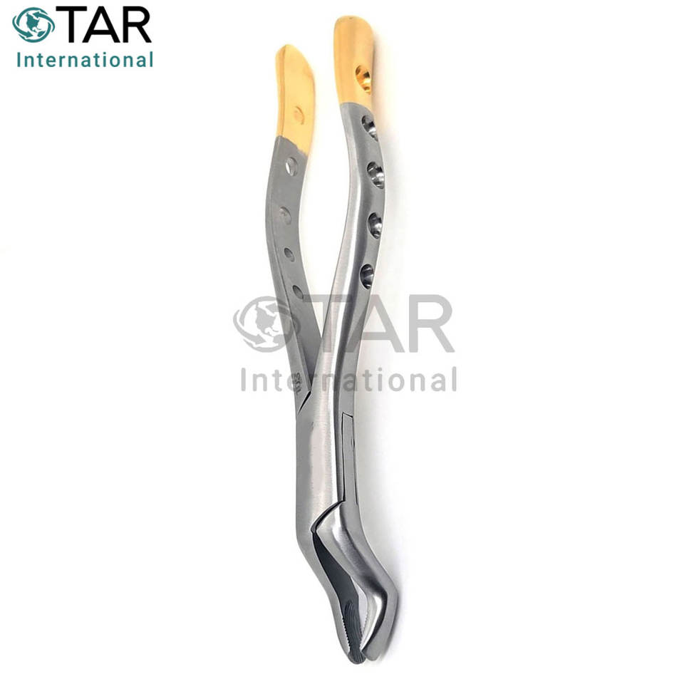 Pince d'extraction dentaire de qualité supérieure 10S Molaire supérieure Extraction de dents universelle Instruments médicaux Becs dentelés Poignée en or