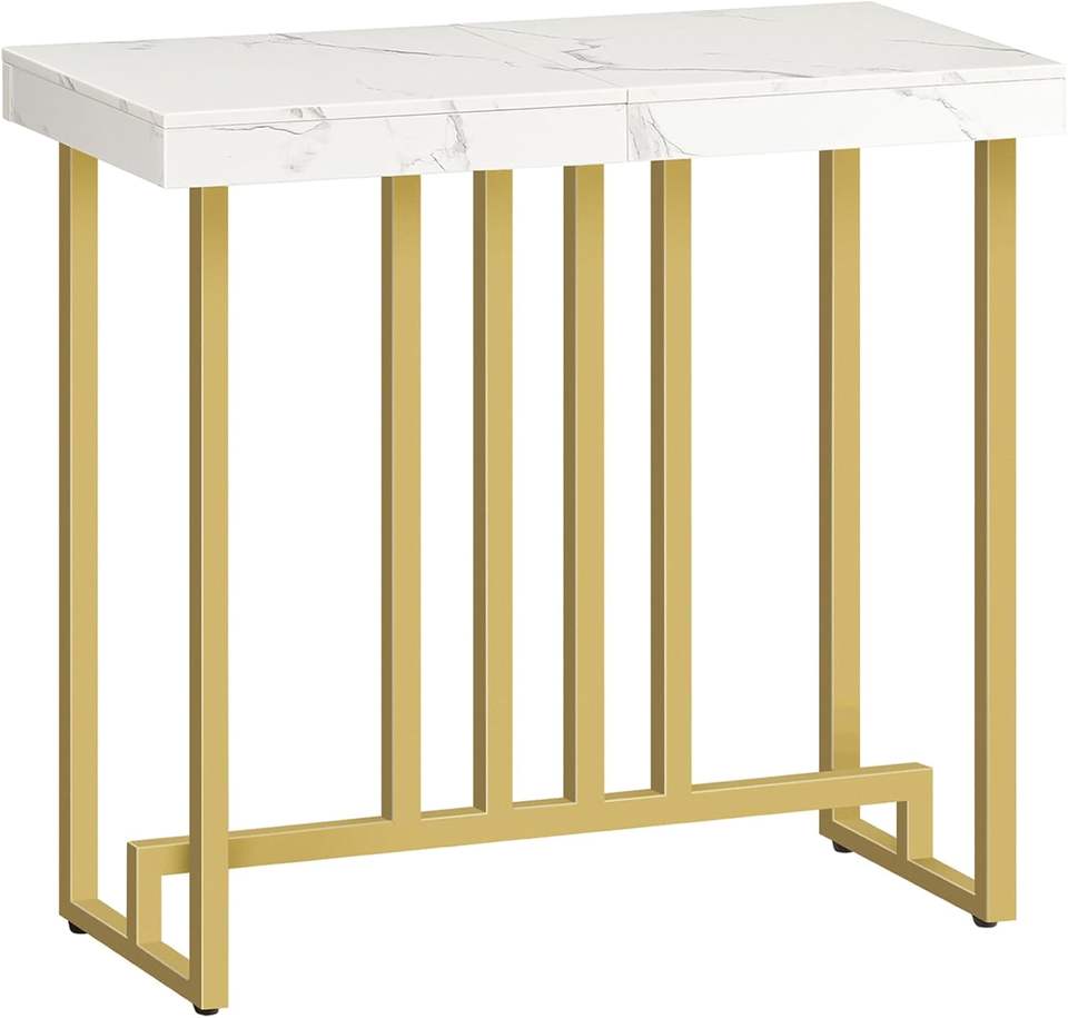 Table console moderne en métal de couleur or avec plateau en marbre blanc écologique de qualité supérieure, design élégant, structure robuste, construction artisanale