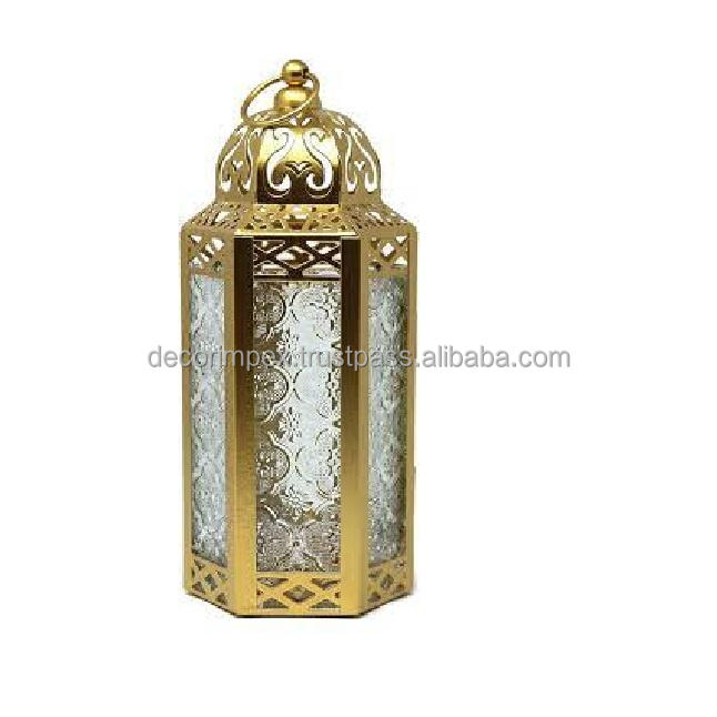 Design haut de gamme Décoration intérieure Lanternes en verre de fer moyen Candélabre de mariage en métal doré Lanterne Design par décor impex
