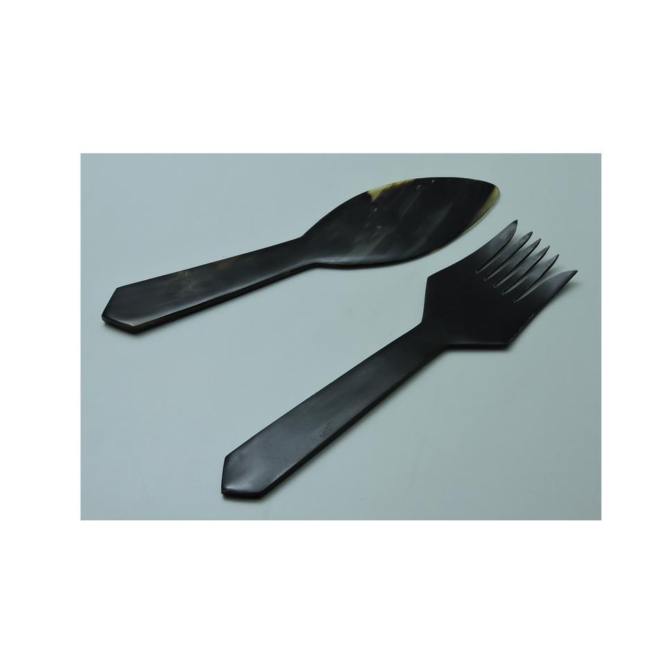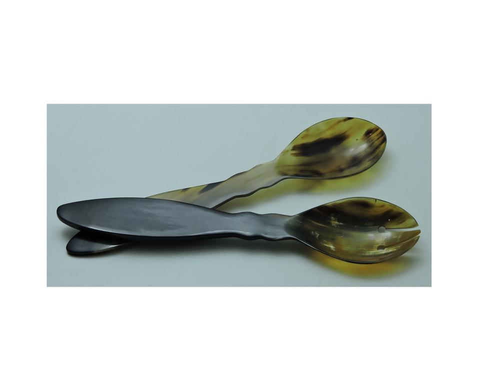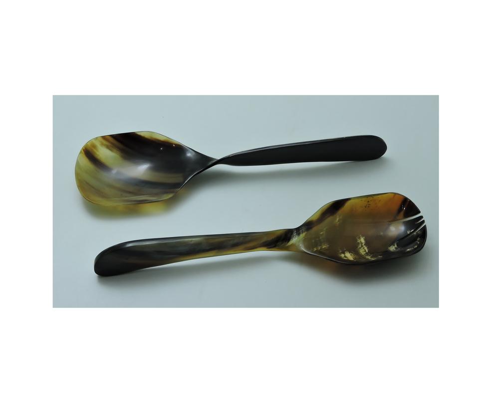 Ensemble de 2 cuillères à salade en corne de buffle naturelle, design haut de gamme, fabriquées à la main, prix de gros.