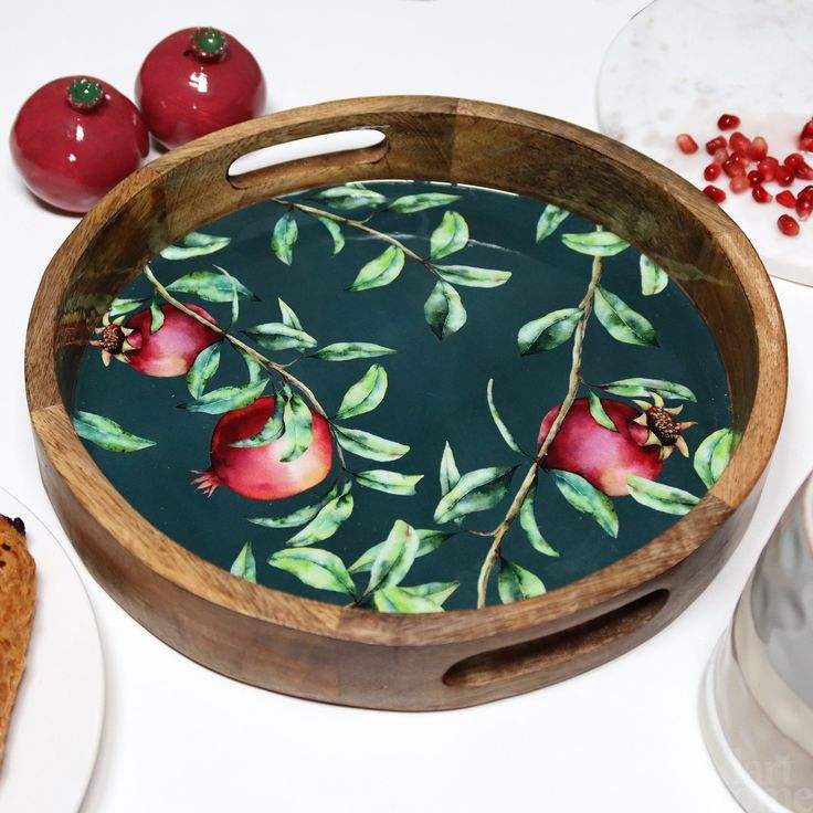 Plateau décoratif en bois de manguier avec impression émaillée, design premium, plateau de service en bois, plateau à impression émaillée, prix de gros direct usine