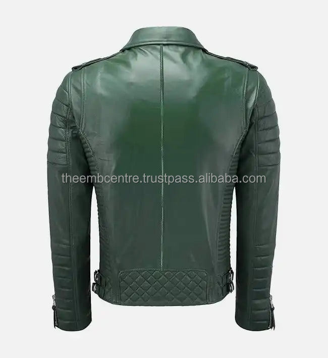 Veste de mode en cuir de haute qualité pour hommes, design de qualité supérieure, coupe régulière, veste en cuir vert pour motard coupe ajustée pour hommes
