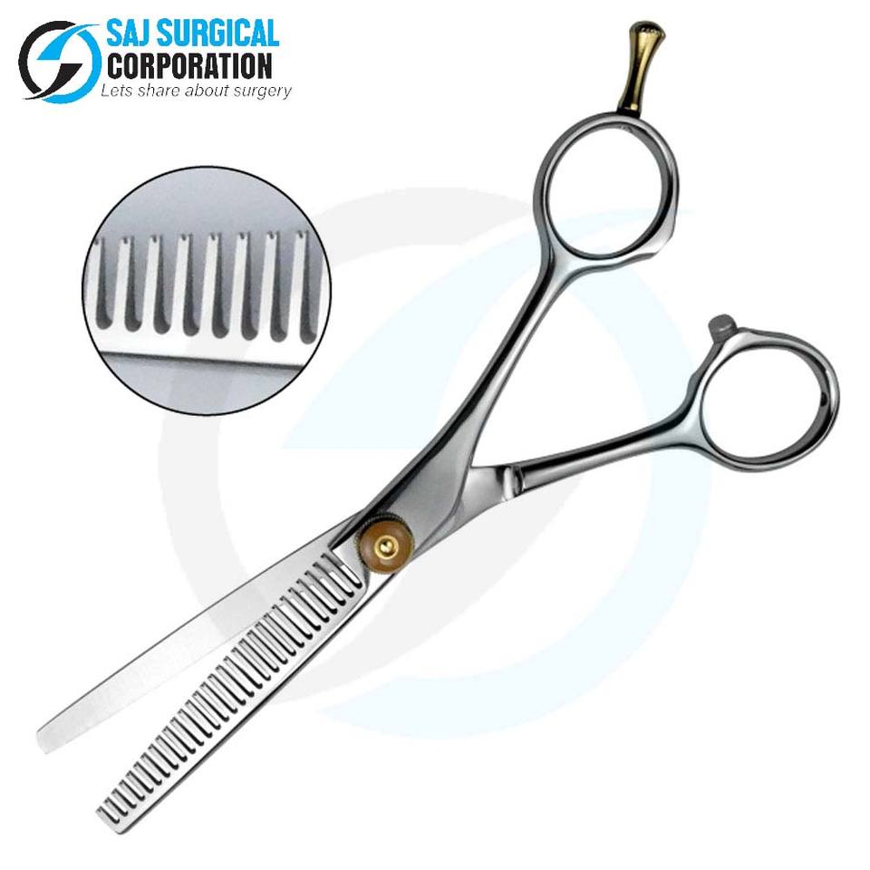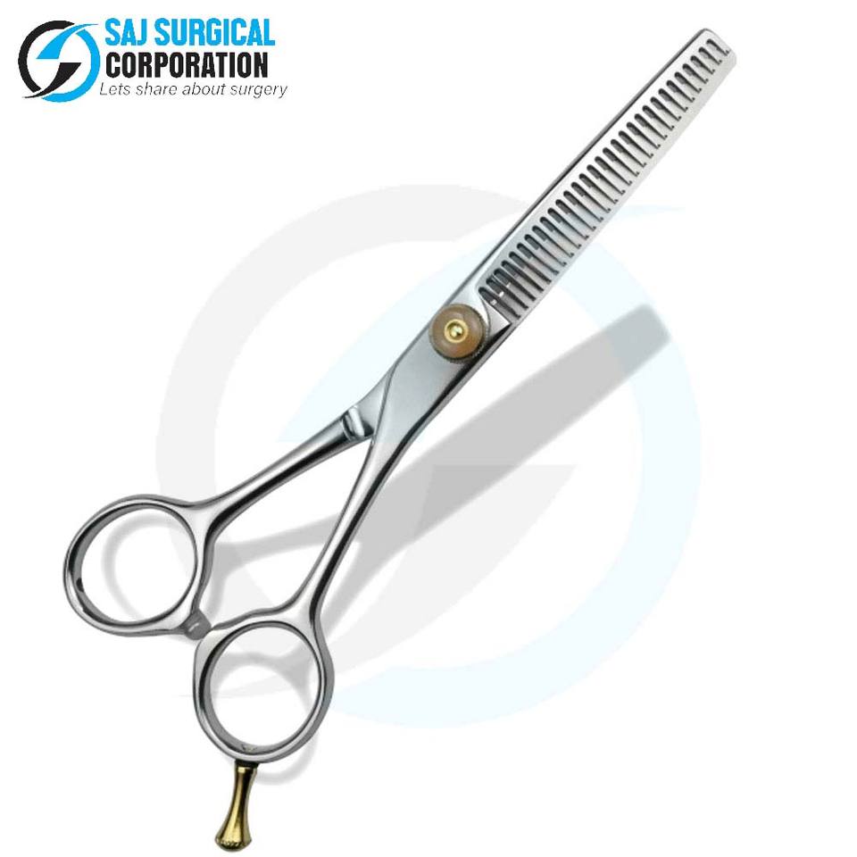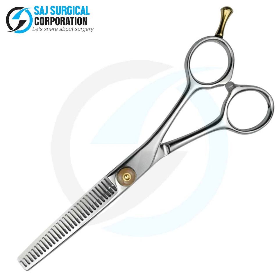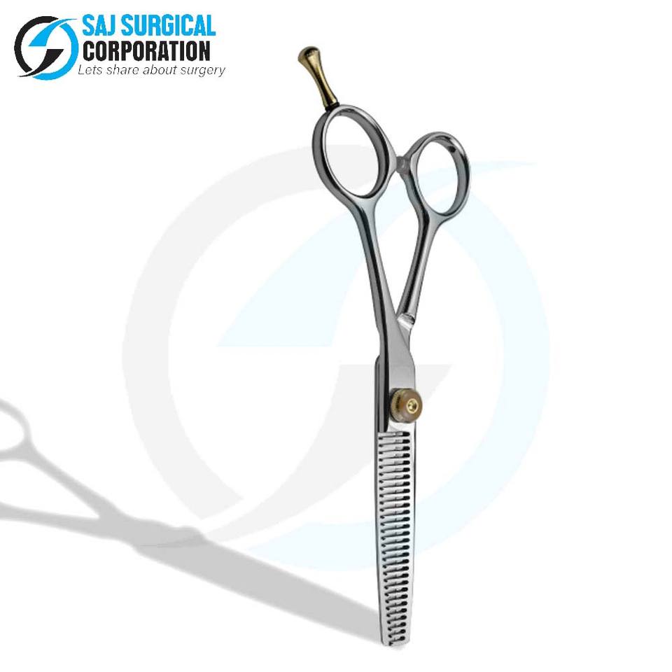 Ciseaux de coiffure de qualité supérieure avec poignée innovante, lames à 32 dents en acier japonais, certifiés ISO, SAJ SURGICAL CORPORATION