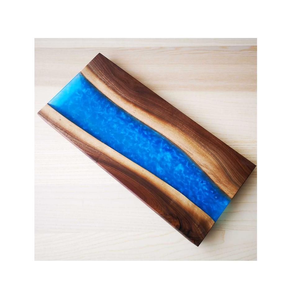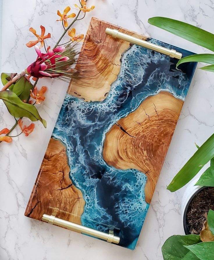Plateau de service en bois et résine de conception haut de gamme pour mariage, rangement alimentaire, vente directe d'usine, produit fait main