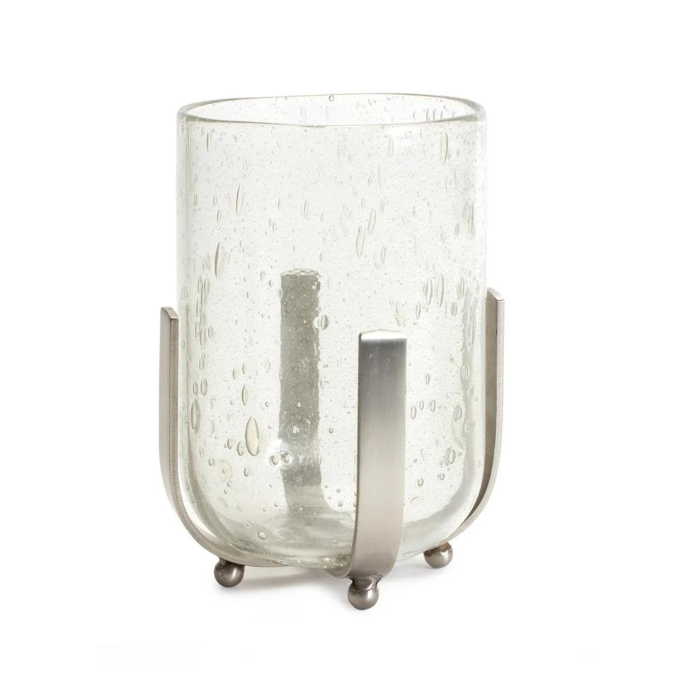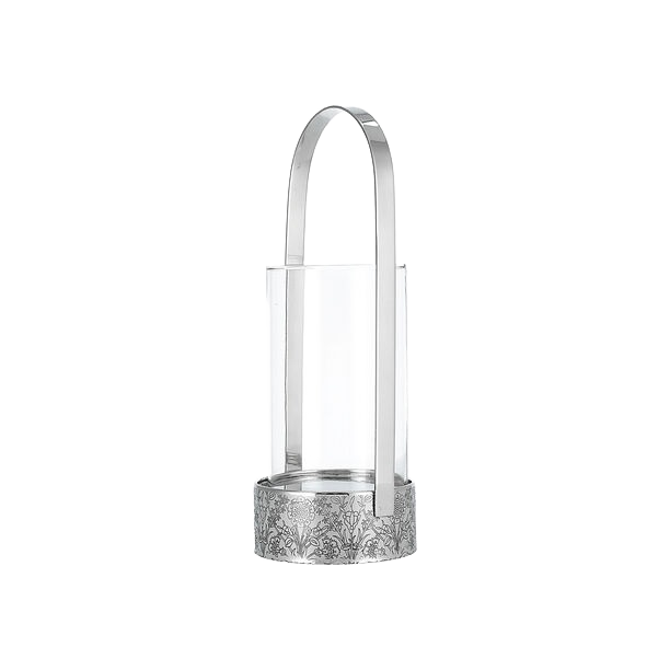 Lanterne artisanale en argent de qualité supérieure 11x31x11 cm avec base en métal et corps en verre pour la décoration de la maison et Noël