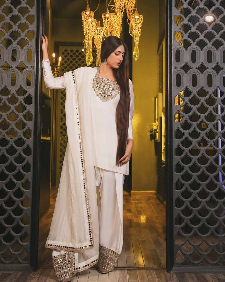 Top de travail miroir véritable de créateur de qualité supérieure avec Farashi Plazzo Dupatta Ensemble de vêtements de fête de style pakistanais cousu lourd Offre de lancement!