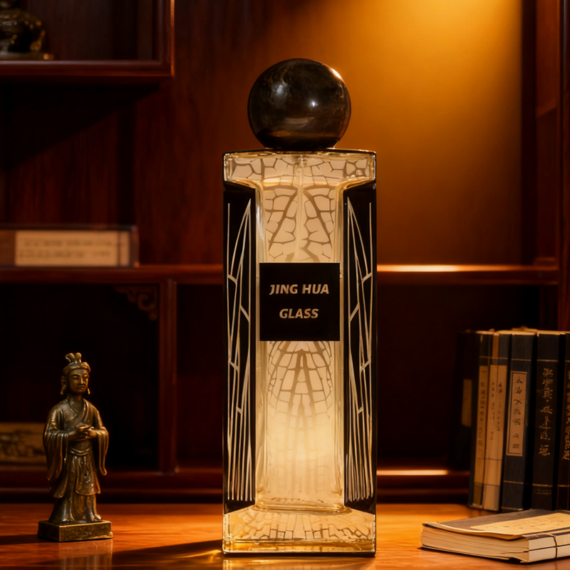 Flacon de parfum de luxe imprimé à l'écran de soie de designer haut de gamme 100 ml style Arabis avec bouchon en résine et logo personnalisé