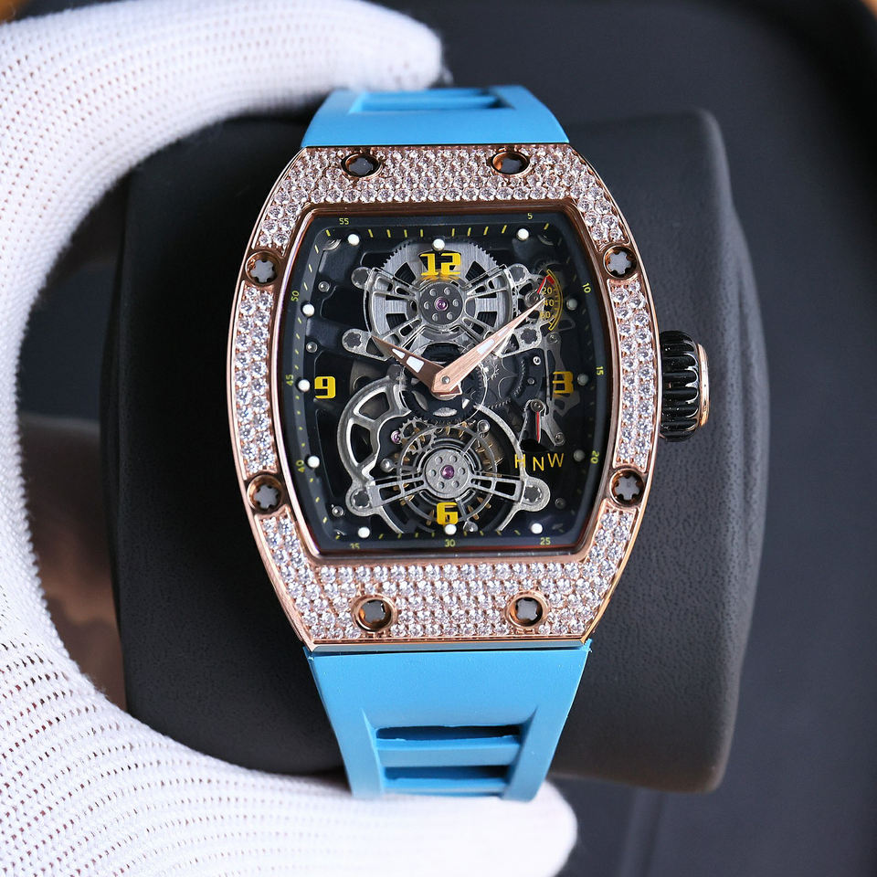 Montre mécanique de luxe haut de gamme pour homme, squelette, avec tourbillon et diamants, plaquée or rose