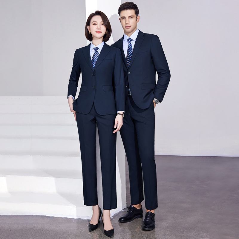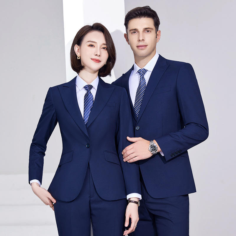 Ensemble de costume en laine double-boutonnage de qualité supérieure pour hommes et femmes - Vêtement formel anti-plis à devant plat pour le bureau, les affaires, les ventes gouvernementales