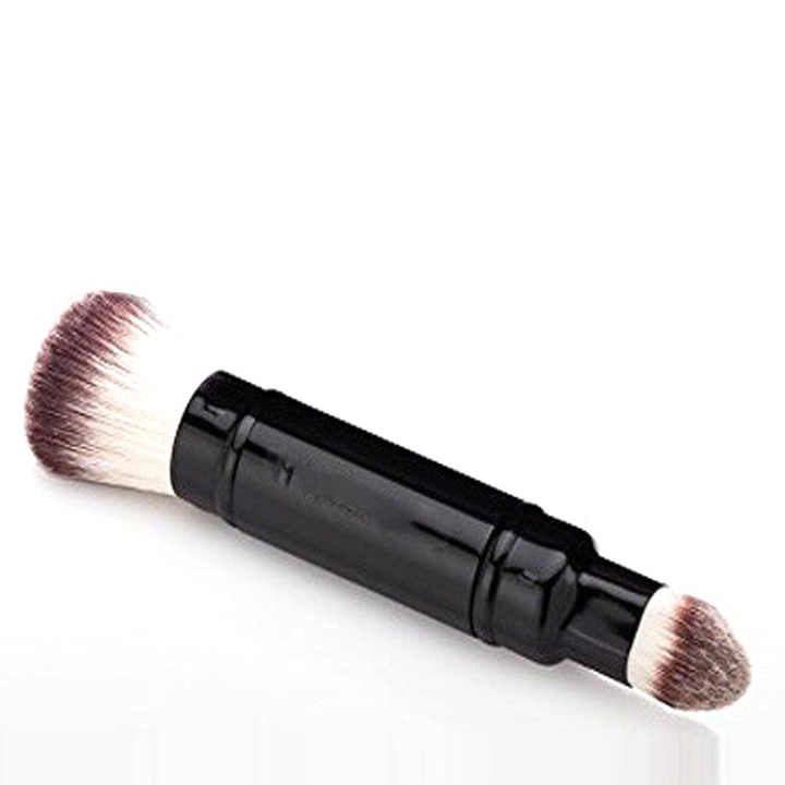 Pinceau de maquillage Kabuki rétractable double embout de qualité supérieure avec capuchon, poils synthétiques vegan et sans cruauté pour poudre et crème