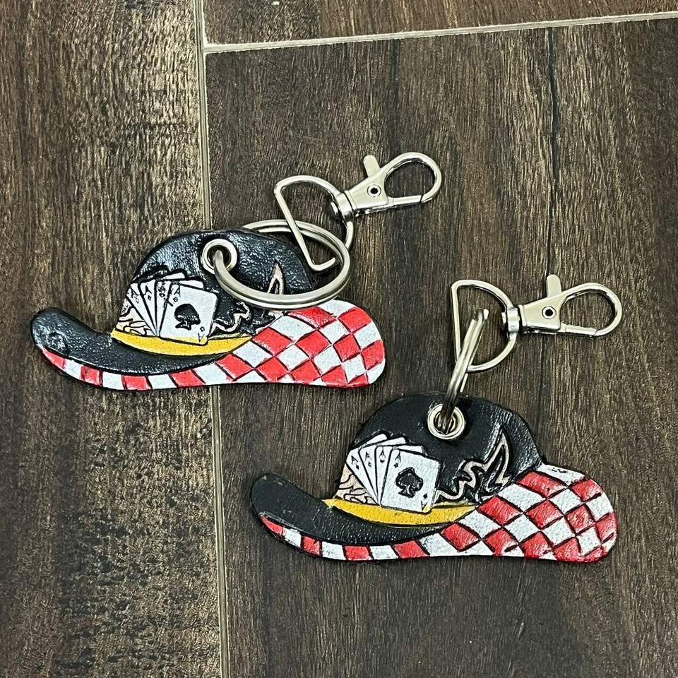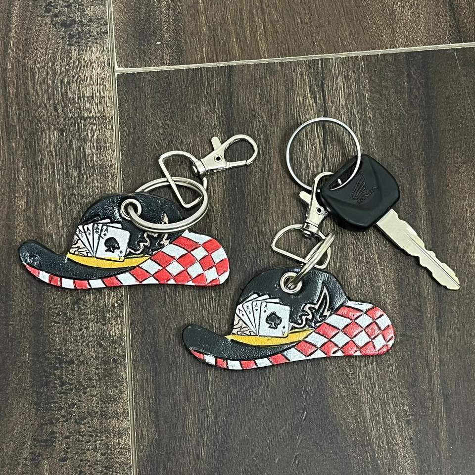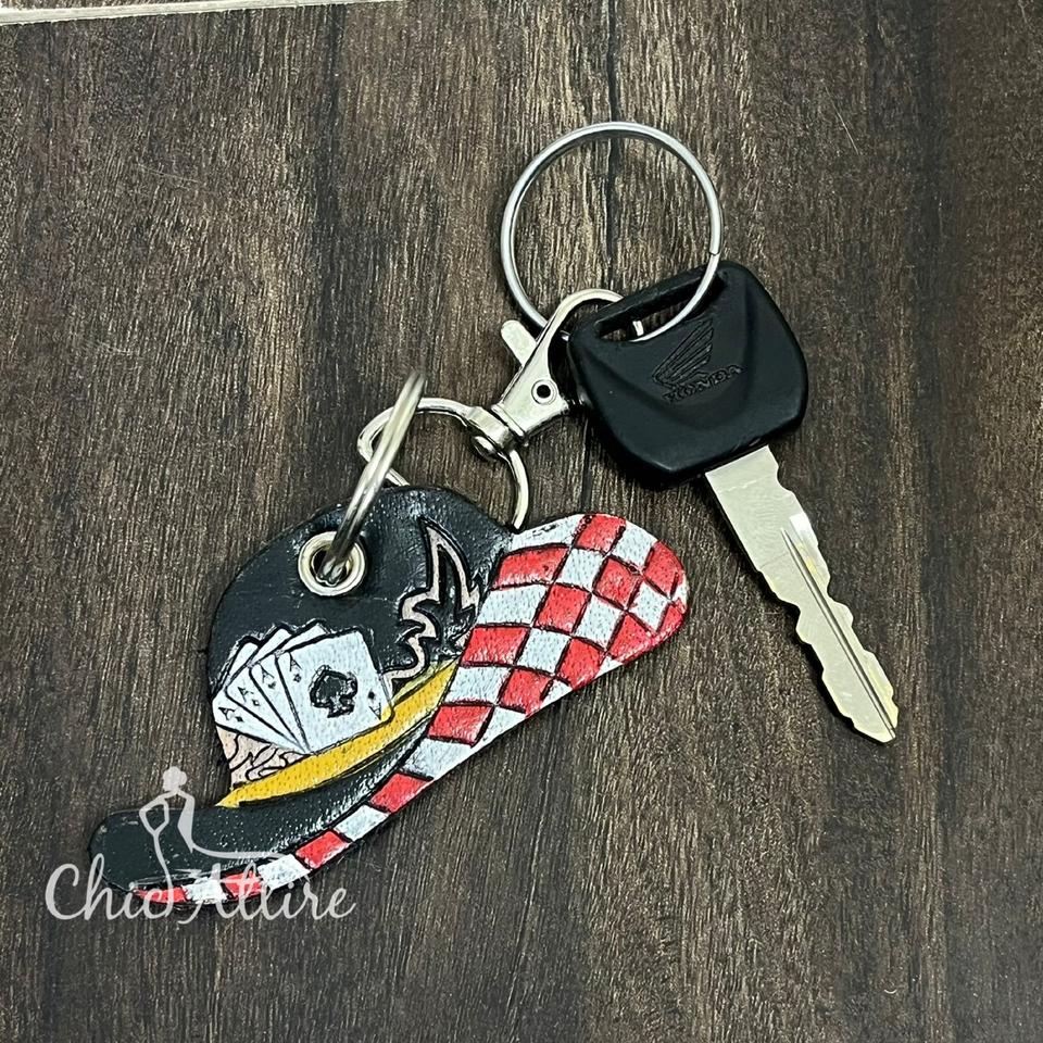 Porte-clés en cuir à carreaux, travaillé à la main