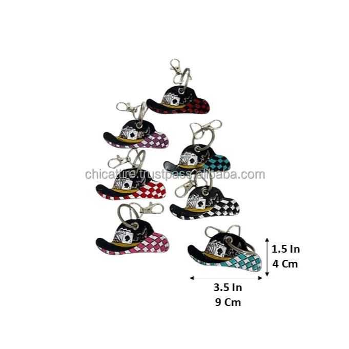 Porte-clés en cuir de vache véritable, durable, fait main, motif à carreaux, embossé, accessoire rustique de style western pour hommes et femmes