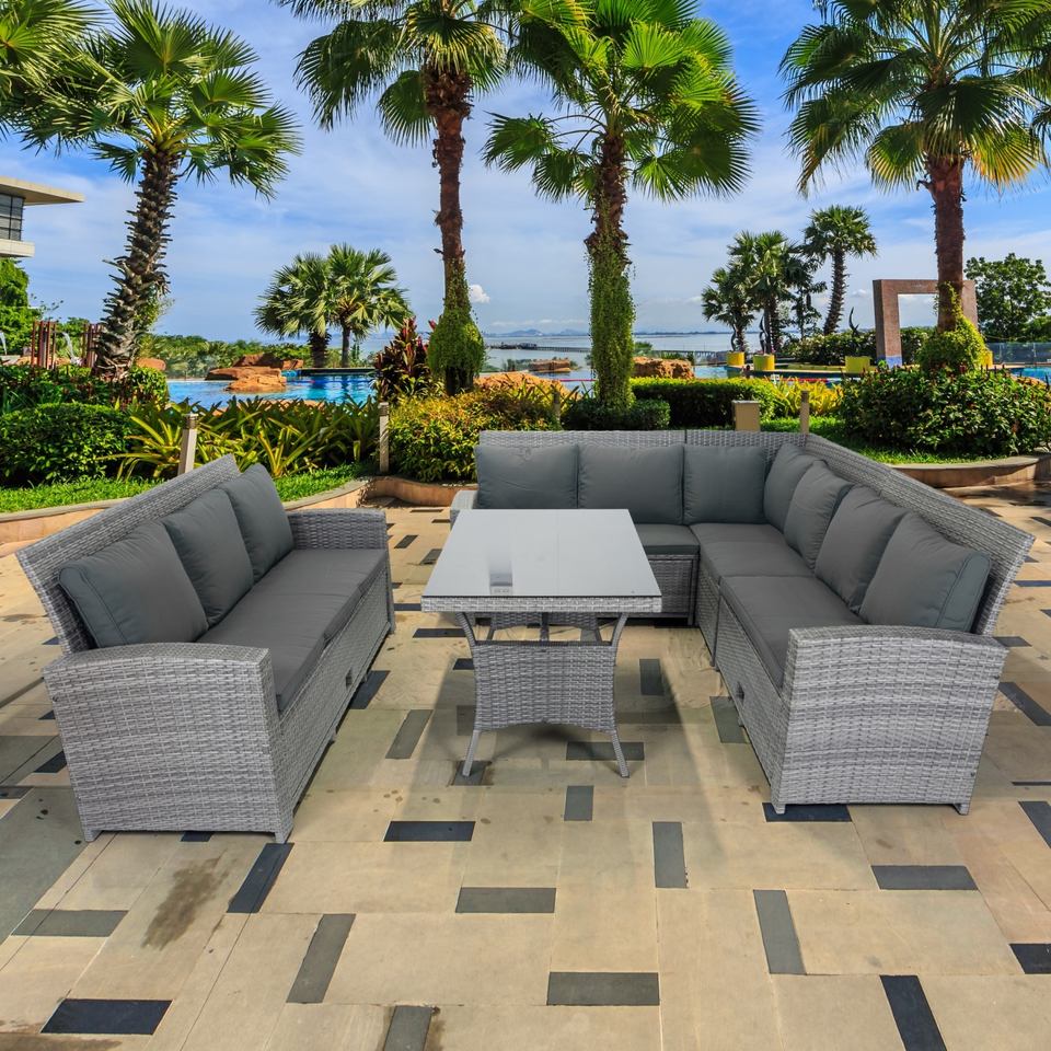 Meubles d'extérieur modernes en fer et rotin tressé, durables, résistants aux UV, lavables, non pliables, pour salle à manger, sport et salon