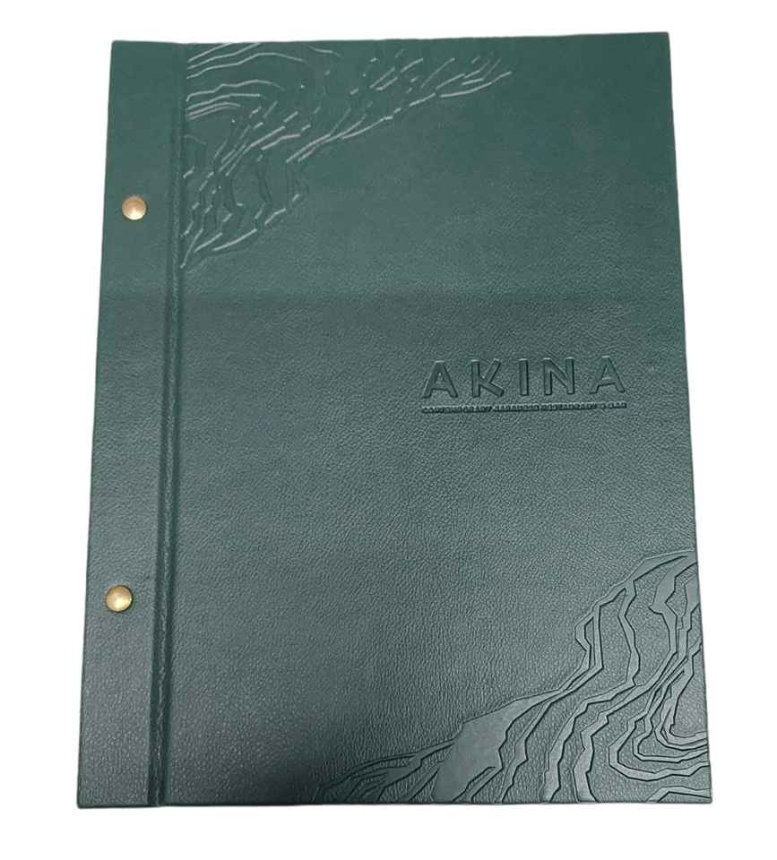 Description:leatherette menu folder with nickel plated logo