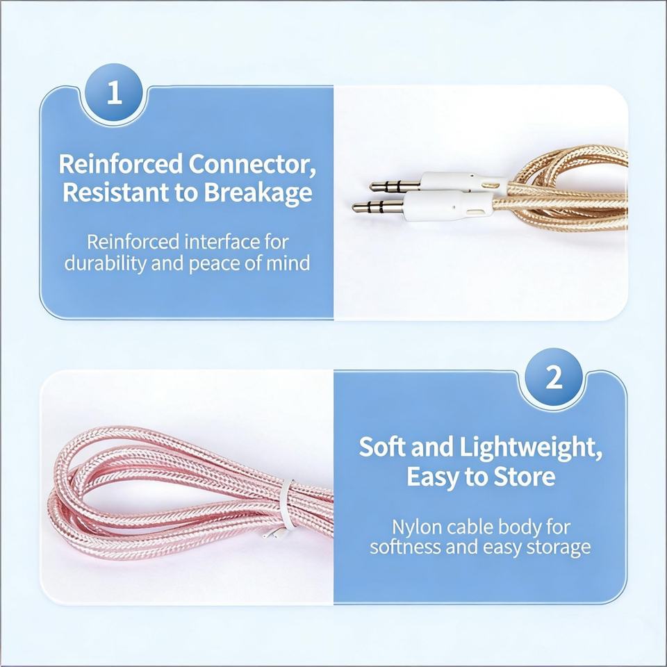 Nom du produit:Câble Auxiliaire 3,5 mm mâle-mâle tressé en nylon de qualité supérieure, durable et anti-nœuds.