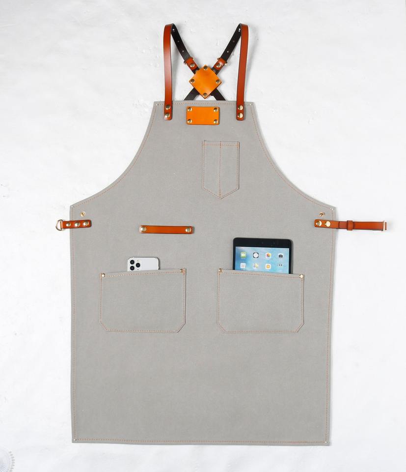 Tablier de travail en toile cirée durable de qualité supérieure avec fermeture éclair, réglable, à bretelles croisées, pour chef, barbecue, barbier, charpentier, équipement d'atelier LCA-0089