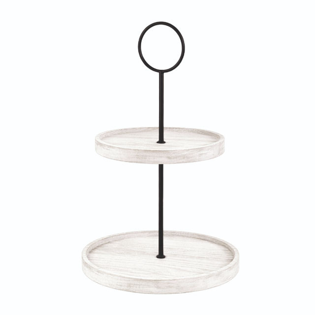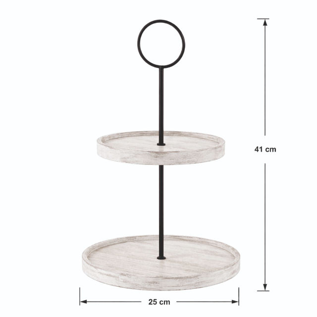 Support à gâteau rond en bois à 2 niveaux, écologique et de qualité supérieure, avec tige centrale en métal et poignée en anneau, compatible lave-vaisselle et congélateur