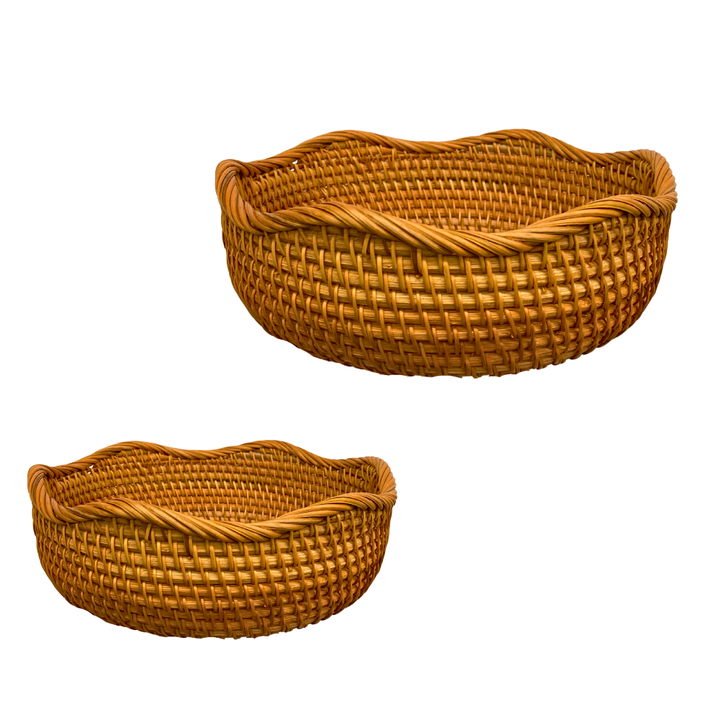Panier/Plateau en rotin tressé artisanal écologique de qualité supérieure pour le rangement et la décoration