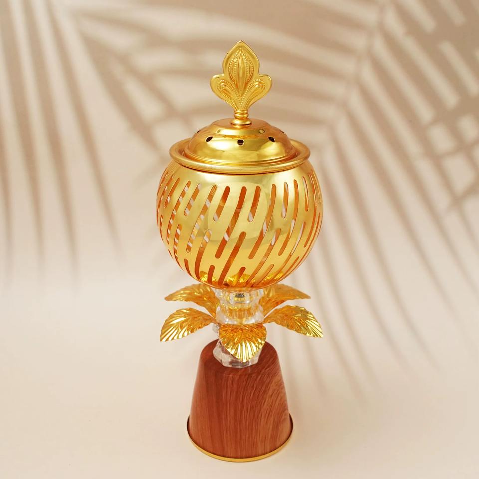 Brûleur d'encens rond en or écologique de qualité supérieure pour la décoration de la maison et des hôtels, Bakhoor arabe