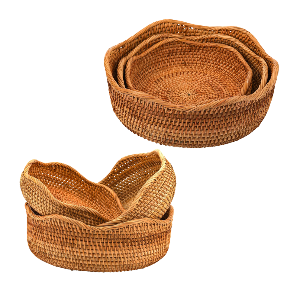 PANIER/PLATEAU en rotin de pain en osier écologique de qualité supérieure 3 pièces paniers décoratifs tissés à la main bord de vague artisanat du Vietnam
