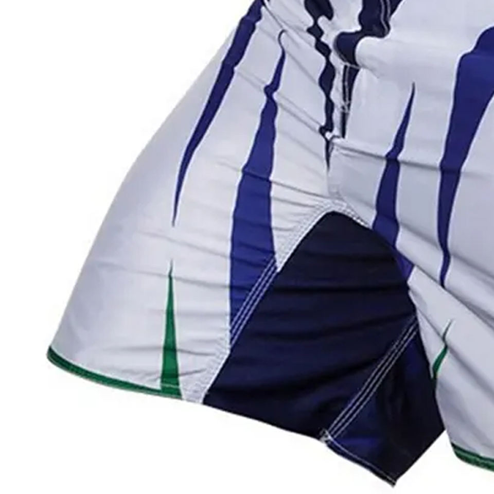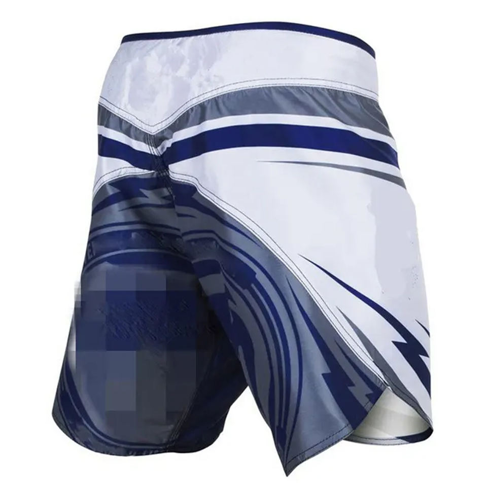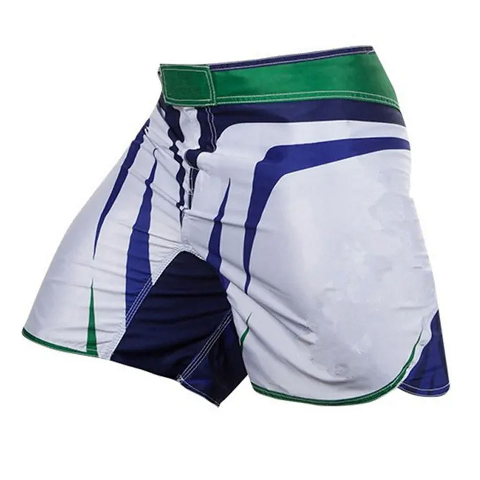Meilleure vente Short de combat MMA tricolore personnalisé avec rayures graphiques imprimées sur tout le tissu extensible fermeture Velcro Short MMA