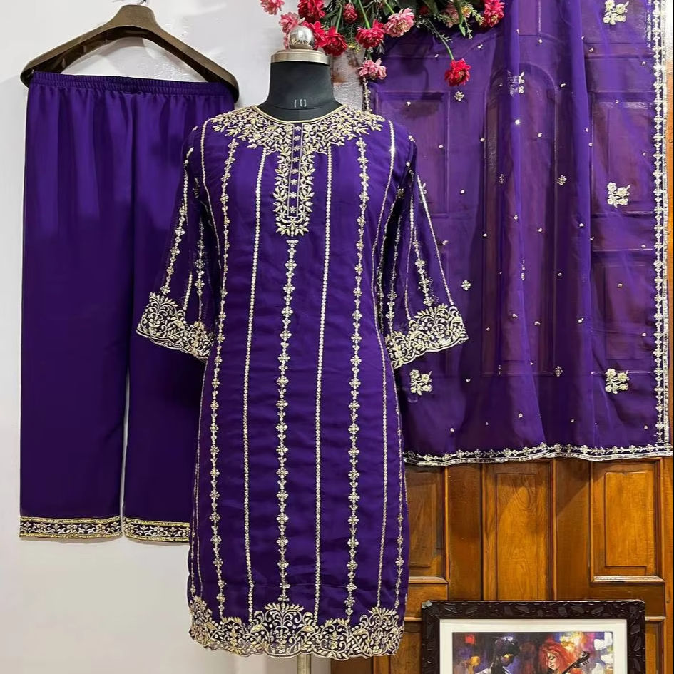 PLAZZO WORK:SEQUINS EMBROIDERY WORK* (FULLY STITCHED)