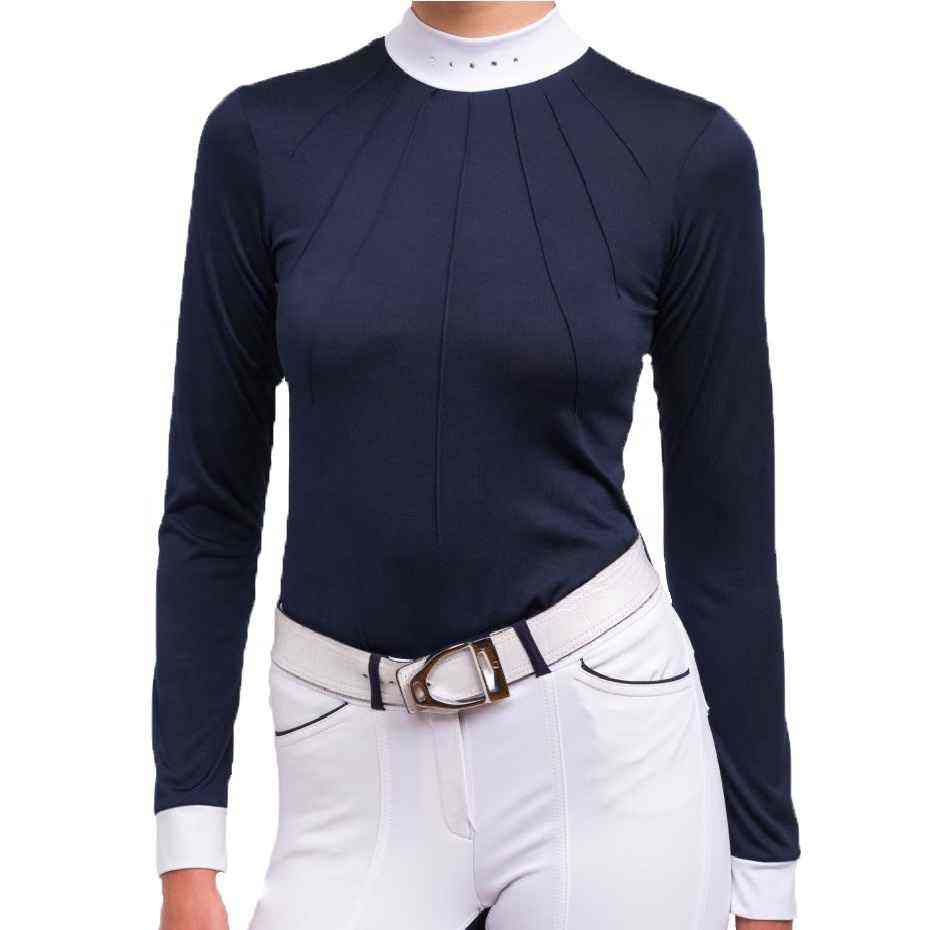 Chemise d'équitation pour femme, col rond, tissu respirant et anti-transpiration, qualité premium.