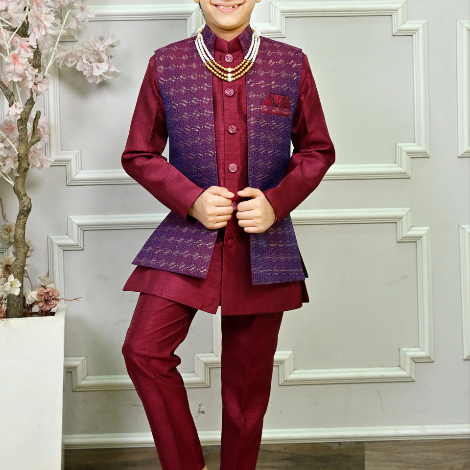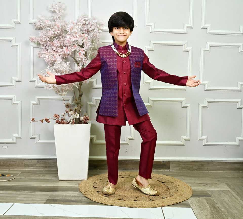 Premium Ethnic Kids Boys Silk Sherwani Traditional Wedding & Party Wear Sun Protection