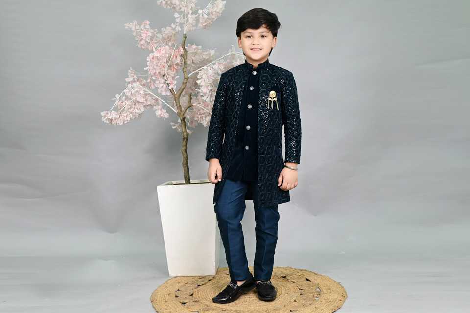 Premium Ethnic Kids Boys Silk Sherwani Traditional Pakistani Indian Wedding & Party Wear Wrinkle-Free