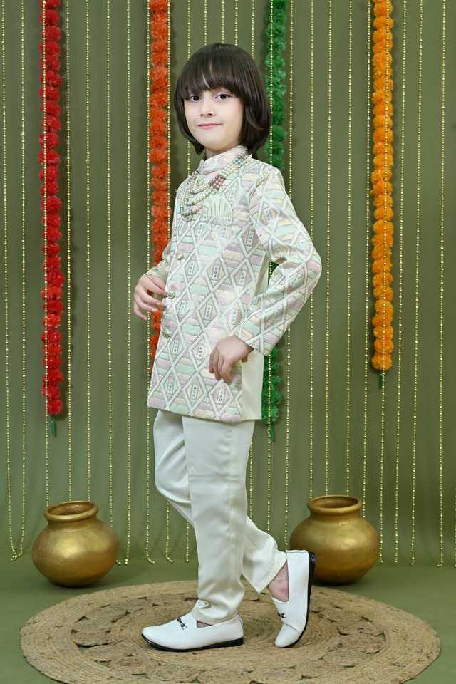 Premium Ethnic Silk Kids Boys Sherwani Traditional Wedding & Party Wear with Royal Look Sun Protection Wrinkle-Free