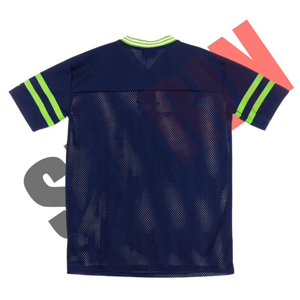 Maillot de football américain imprimé en maille de hublot bleu personnalisé d'usine haut de gamme T-shirt rétro coupe haute Boxy à col en V surdimensionné