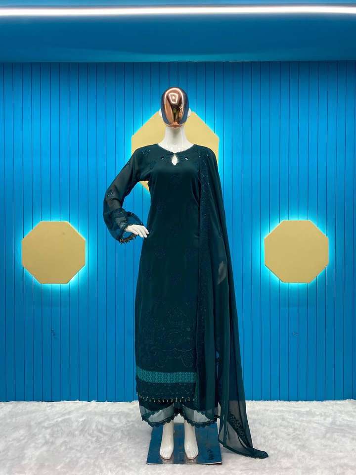 Premium Faux Georgette Séquence Brodé Coupe Travail Moti Travail Haut Et Pantalon Avec Séquence Brodé Dupatta