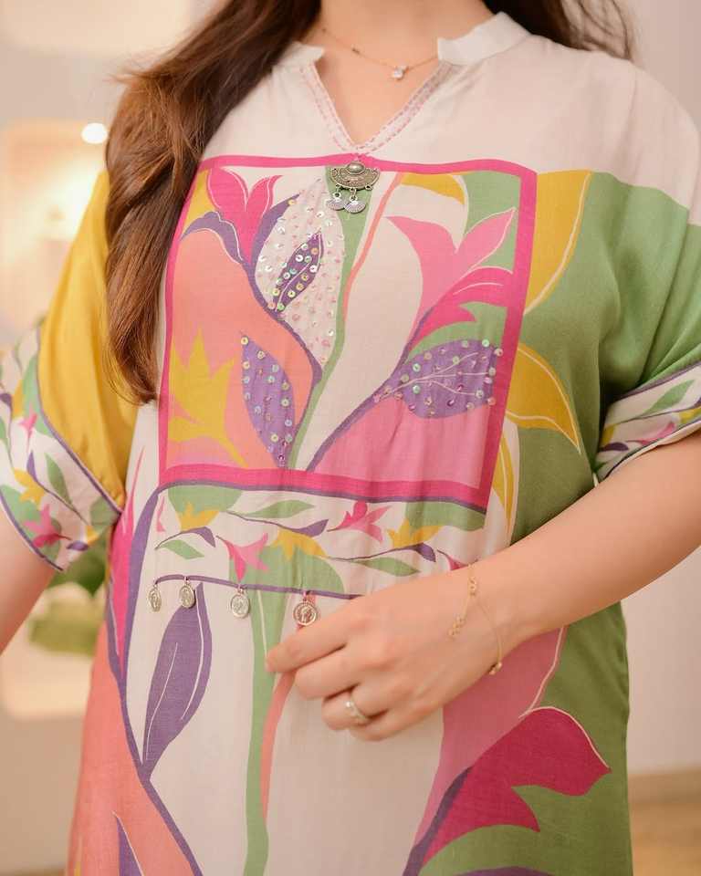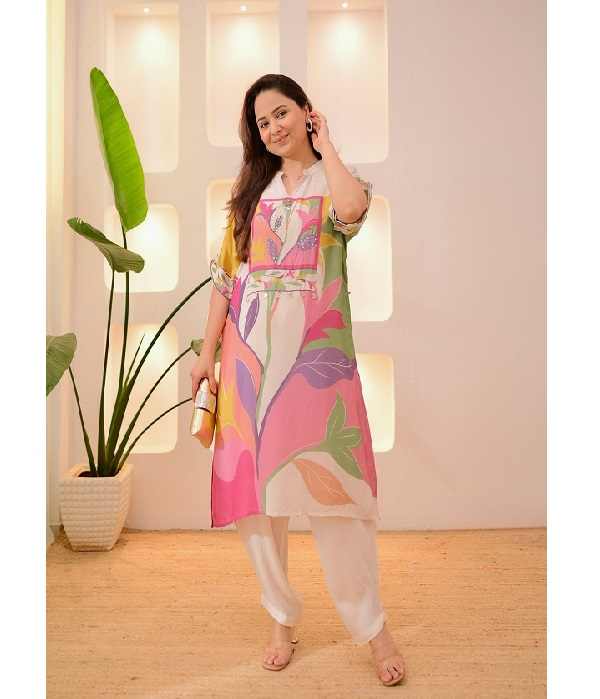 Premium Collection festive Kurta ensemble décolleté élégant travail à la main avec impression numérique tenue de fête indienne robe de mode ethnique