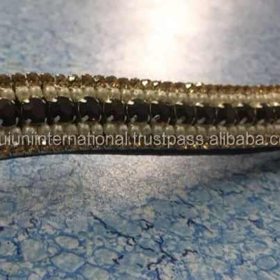 Bandeau de tête en cuir doré et violet à cinq rangées avec perles, élégant et de haute qualité, équipement équestre