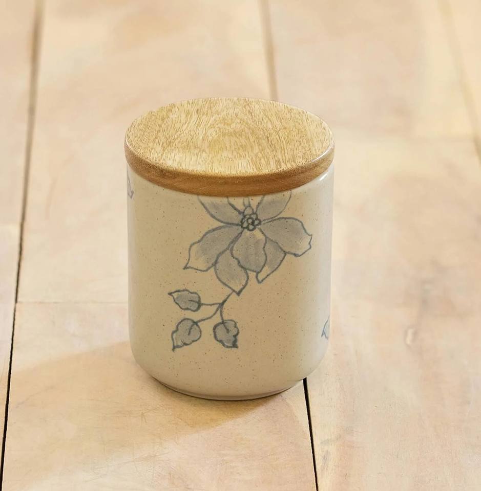 Pot de rangement en céramique florale de qualité supérieure avec couvercle en bois, récipient hermétique pour aliments, organisateur de comptoir de cuisine durable, style élégant