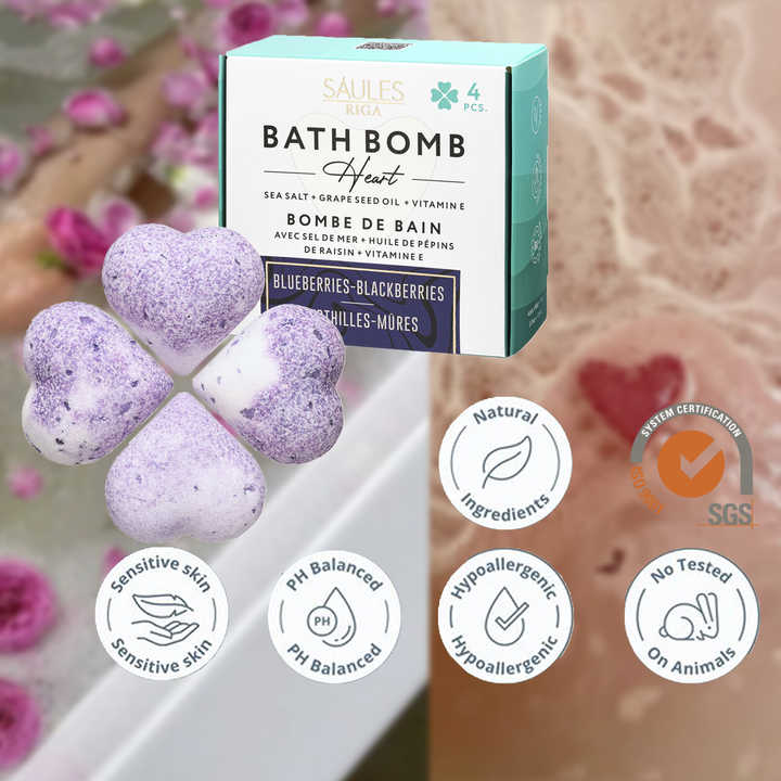 Premium Floral Collection Handmade Natural Fizzy Bath Bomb Set with Blueberry Scent Essential Oil Relaxing Aromatherapy Spa Gift
