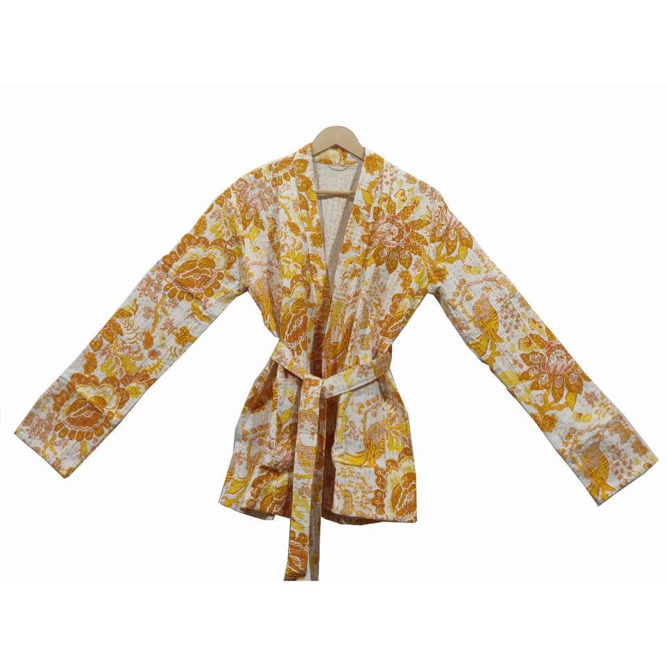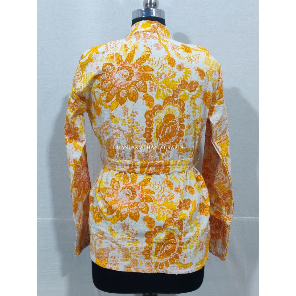 Premium imprimé fleuri Kantha tissé à la main coton veste d'hiver femmes manteau peignoir broderie à la main ethnique en gros court