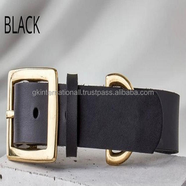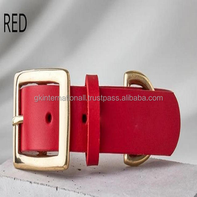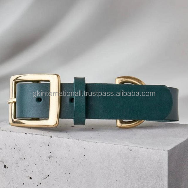 Collier de chien en cuir véritable, gros Grain, boucle et anneau en laiton lourde, couleur noir, rouge et vert
